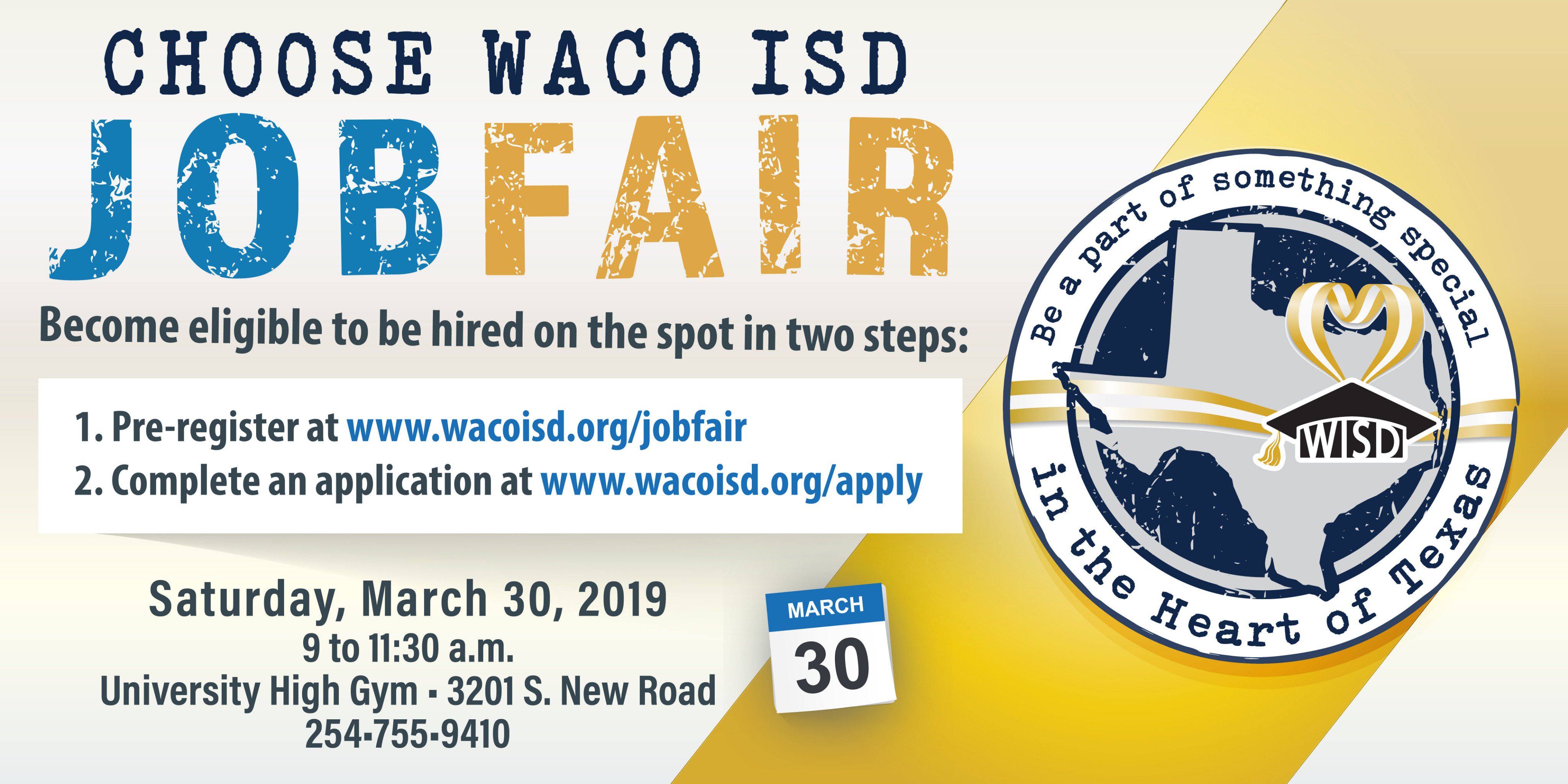 Waco ISD Job Fair. Applicants can register prior to the. Waco ISD to hold Virtual Job Fair for 2021-2022 school year.